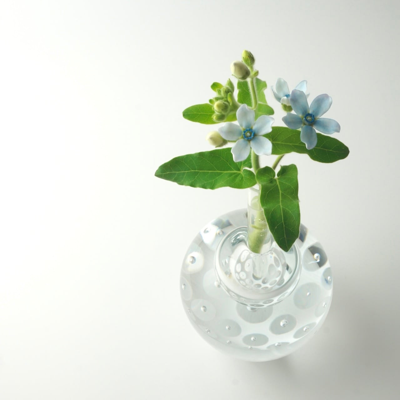 ⭐︎ガラス管・豆蓋は各作品用に制作しており個体差があります。ガラス管に入る水の容量は少なめ(6〜7ml)ですので植物によって半日〜2日位で補給が必要です。
